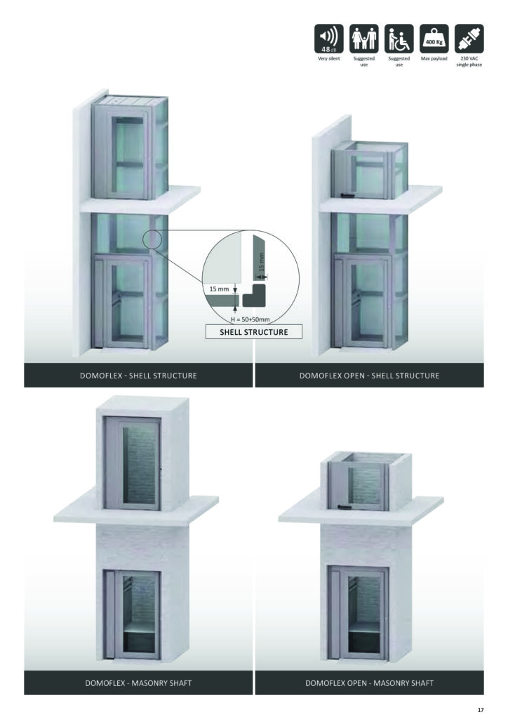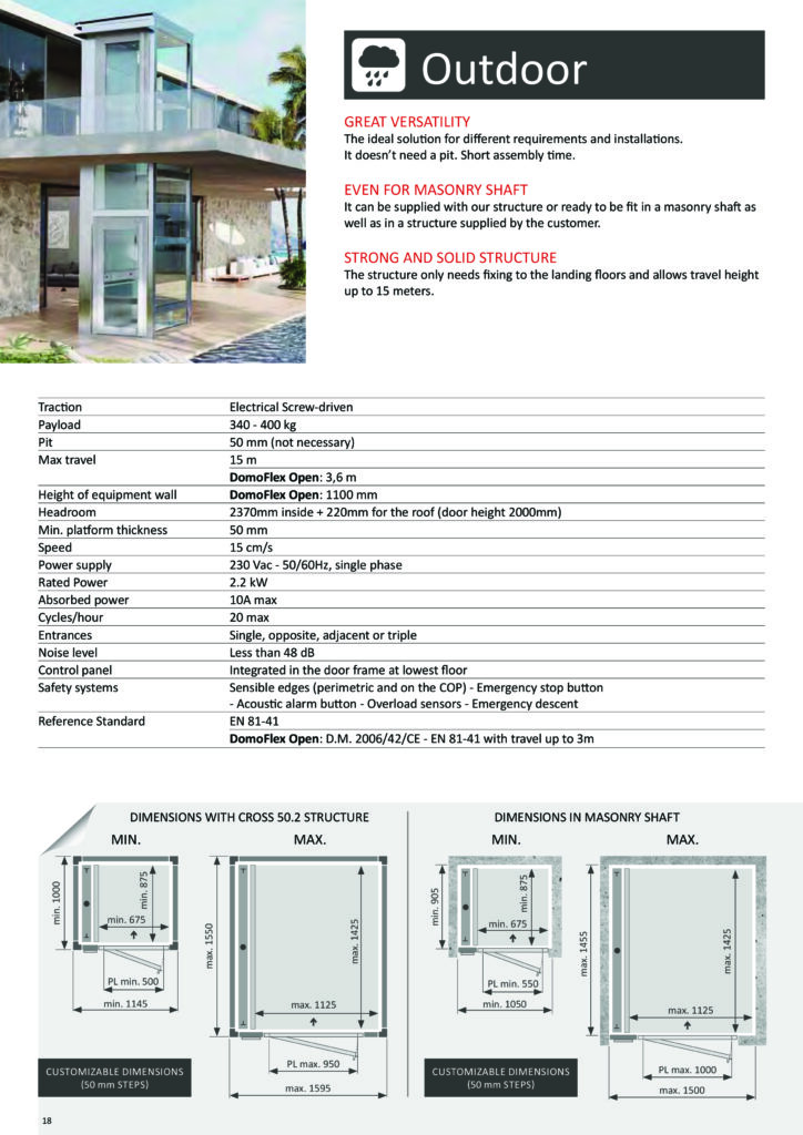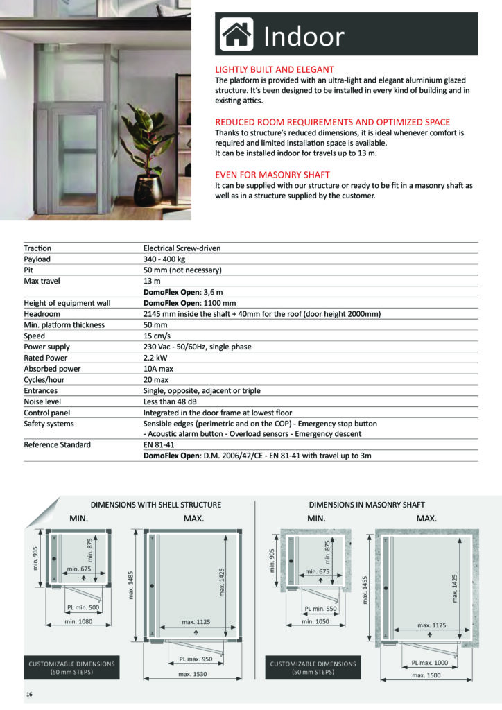 Domoflex is engineered for flexibility and comfort in every home. With its open cabin design and compact footprint, it fits seamlessly into tight spaces while providing smooth, quiet travel across floors. Ideal for both indoor and outdoor installations, Domoflex combines Italian craftsmanship with modern functionality—delivering safe, stylish, and accessible vertical mobility for every lifestyle.
